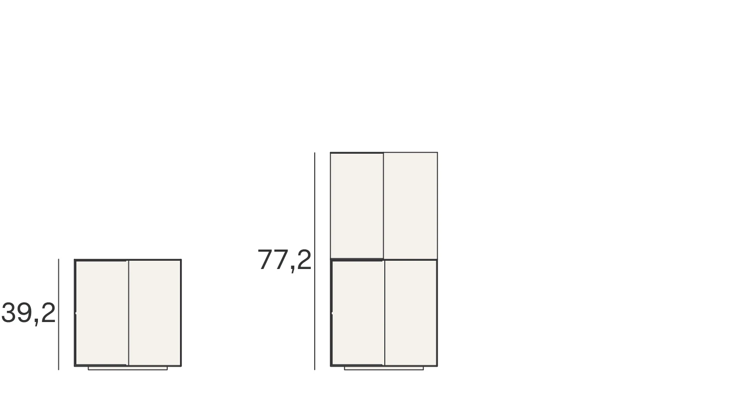 An interior room with a gray concrete floor and a dark gray, textured wall. In the foreground, a modern, modular bookshelf made of metal cubes is shown. On the left, two white cubes are stacked on their side with books inside. On the right, a stack of three olive green cubes holds books. A gray upholstered chair is visible on the far left.