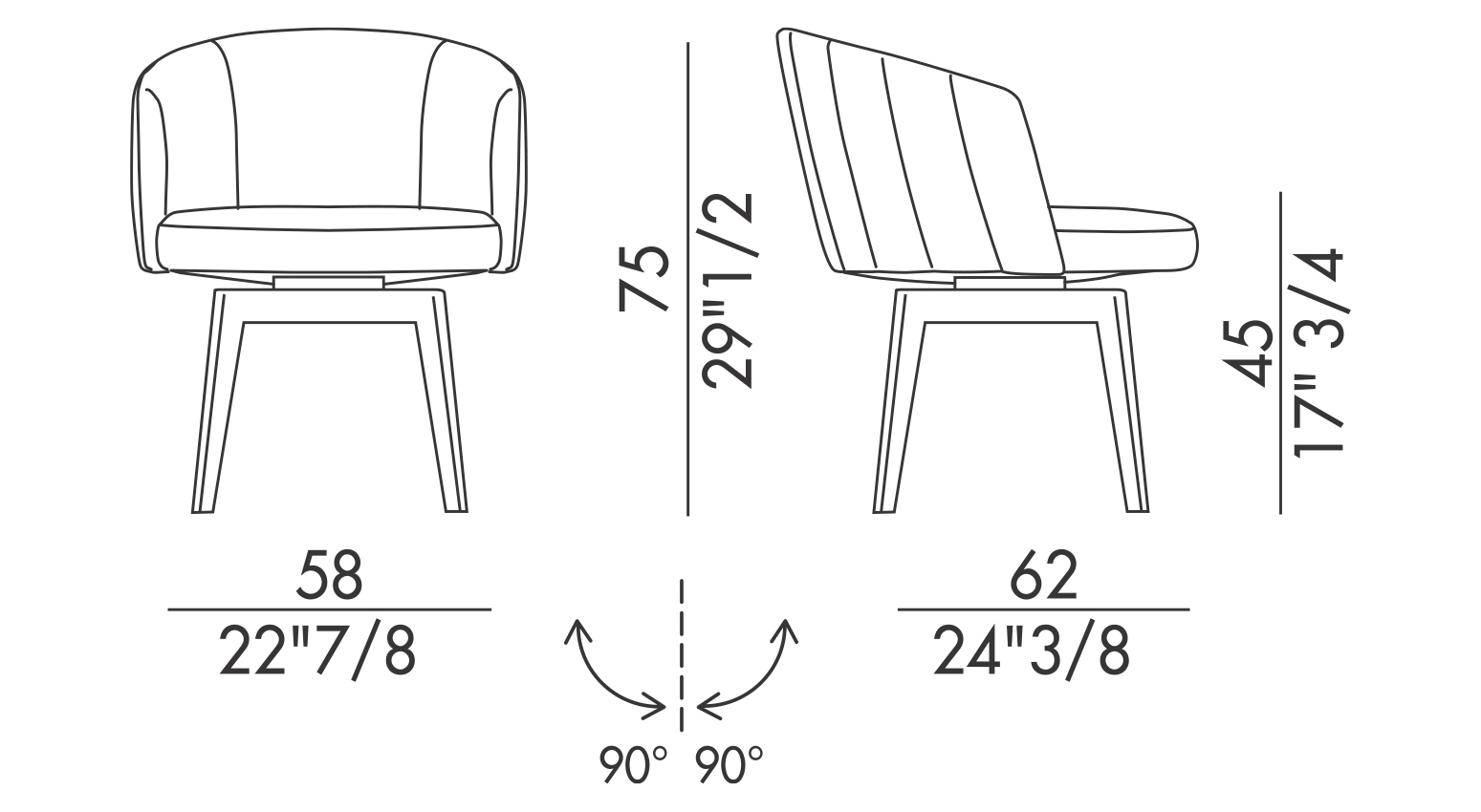 This swivel design armchair fits perfectly in both professional environments and elegant domestic interiors.