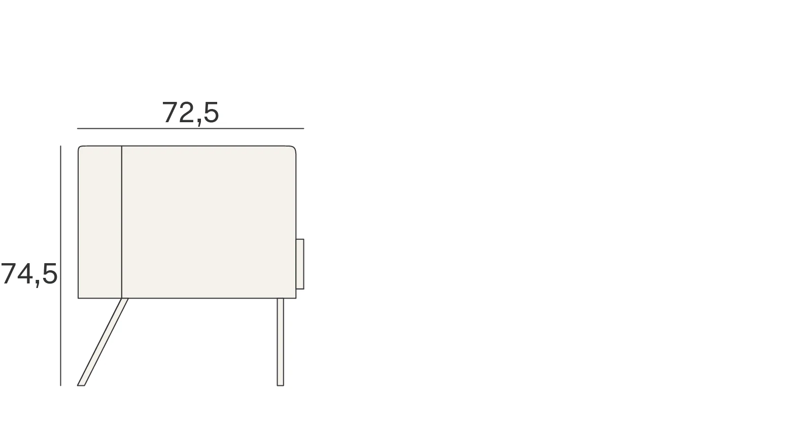 Elegant, streamlined and easily stripped of its covers, this sofa sports simple lines, making it perfect for either the home or a public setting. The cushions are supported by a slender metal frame whose distinguishing feature lies in the angled legs to the rear.