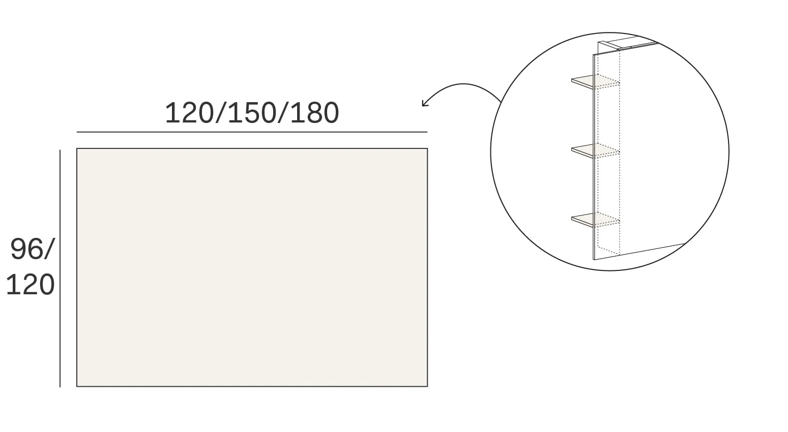 Available in various sizes and finishes, with side shelves and LED light behind panel