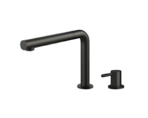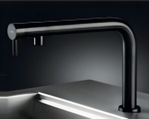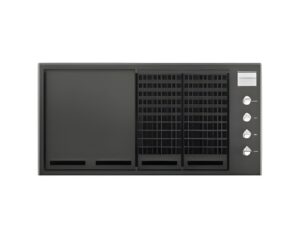 ertical view of the dark, sleek luxury outdoor kitchen console unit, emphasizing its minimalist design and premium construction.