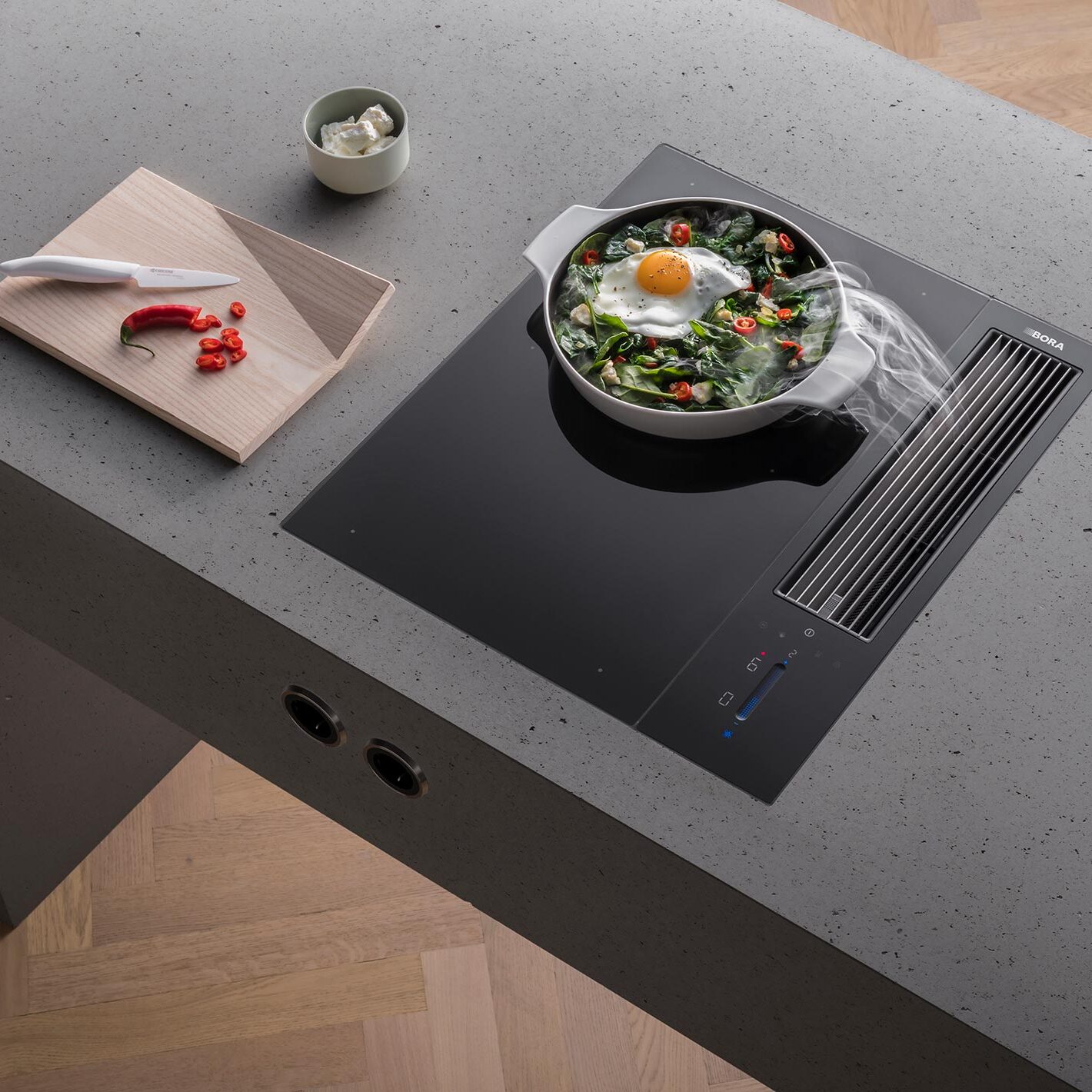 Every BORA Classic cooktop features signature powerful downdraft extraction, ensuring your kitchen remains fresh and free from odours or steam. Air is cleaned efficiently, whether recirculating indoors or ducted outside.