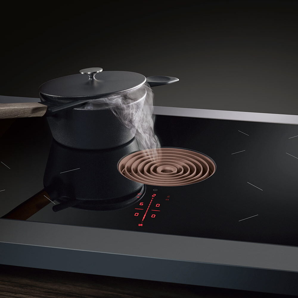 The sControl slider is designed for intuitive, natural operation. A simple touch or swipe allows instant adjustment of the heating and extraction settings, making the technology feel like a seamless extension of you. The controls are clearly illuminated, easy to read, and deliver gentle feedback both visually and acoustically. This means you always know what setting is active, even when your focus is on your cooking or guests.